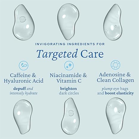 A lightweight depuffing eye gel with caffeine, hyaluronic acid and niacinamide that instantly cools and reduces the appearance of eye bags and dark circles.