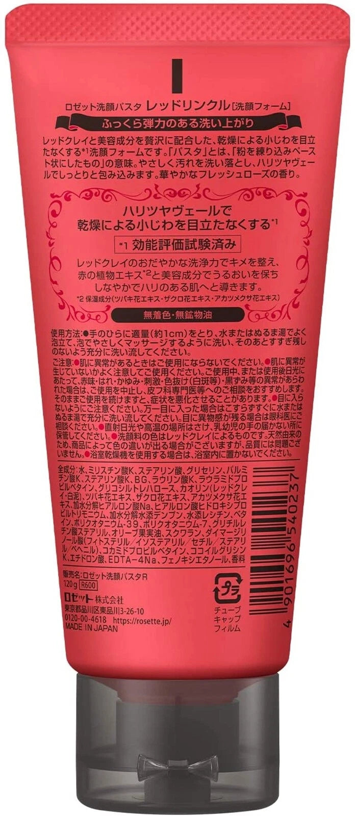 Rosette Cleansing Paste Red Clay Wrinkle is a face wash which is effective for fine lines and wrinkles caused by dryness. It is formulated with red clay to gently removes dirt and dead skin cells, and plenty of highly moisturizing ingredients to prevent dryness and improve skin texture. It leads to moist, supple and firm skin. Recommended for those who are concerned about fine wrinkles.